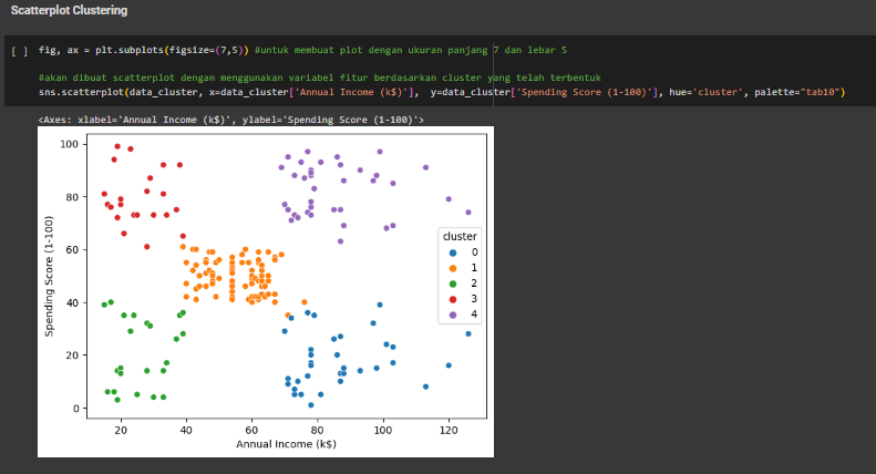 Using mall customer data, cluster analysis is carried out with the aim of knowing customer segmentation based on income and spending scores. This analysis is carried out by carrying out the following stages: